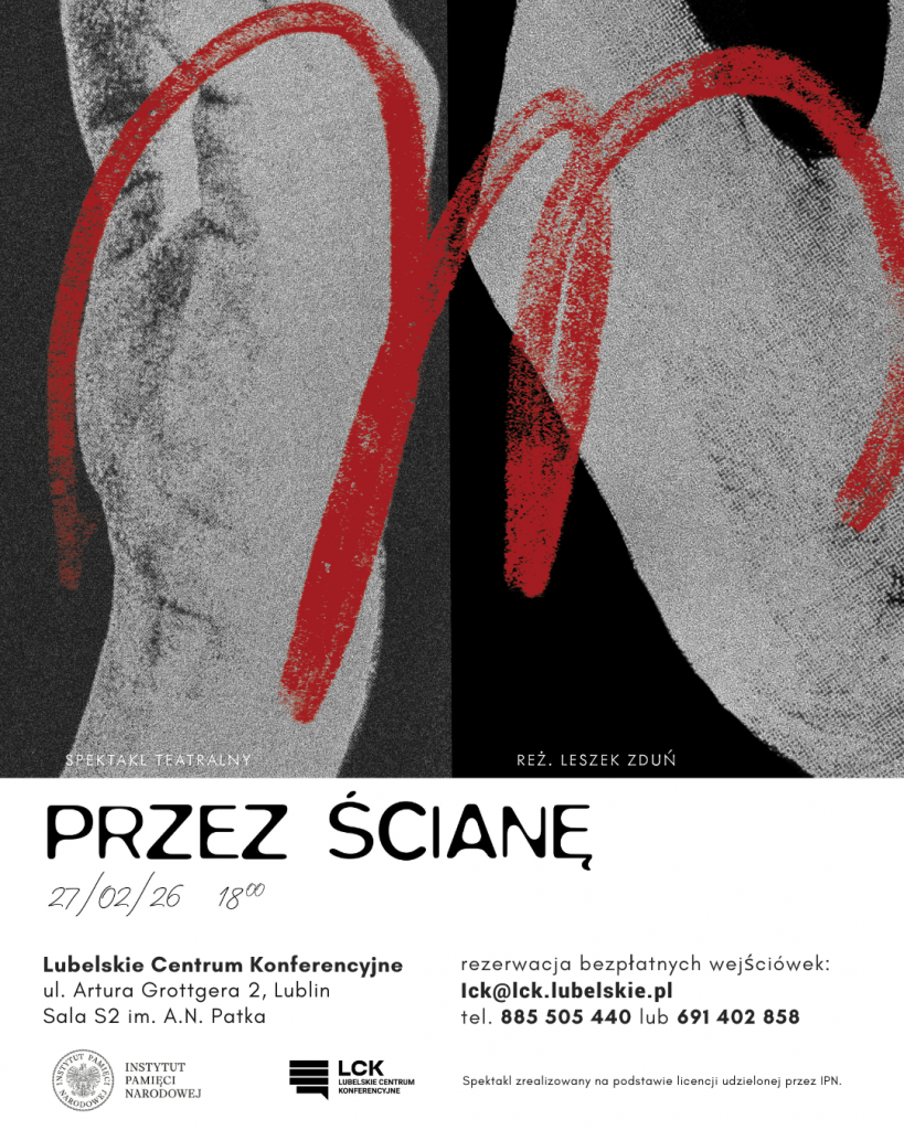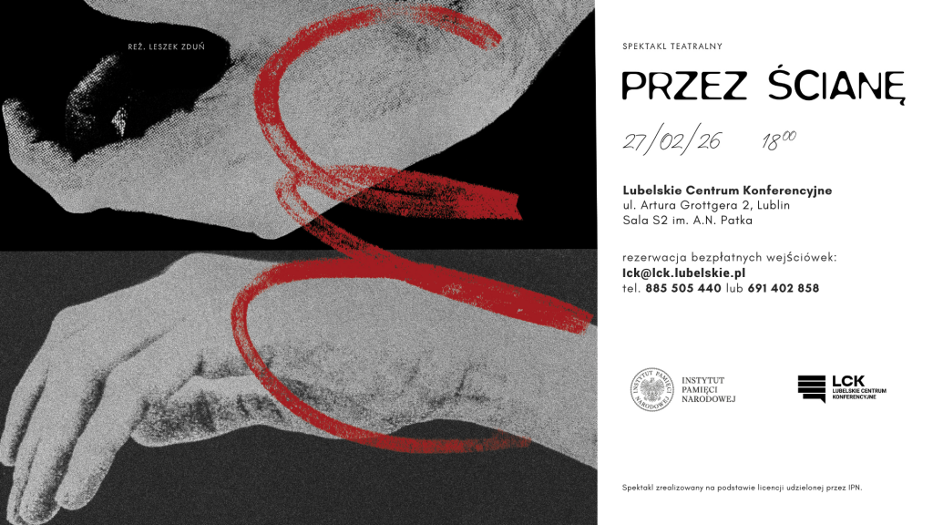 Zapraszamy na wyjątkowe wydarzenie kulturalno-historyczne. 27 lutego 2026 roku o godzinie 18:00 odbędzie się spektakl teatralny „Przez ścianę” w reżyserii Leszka Zdunia.